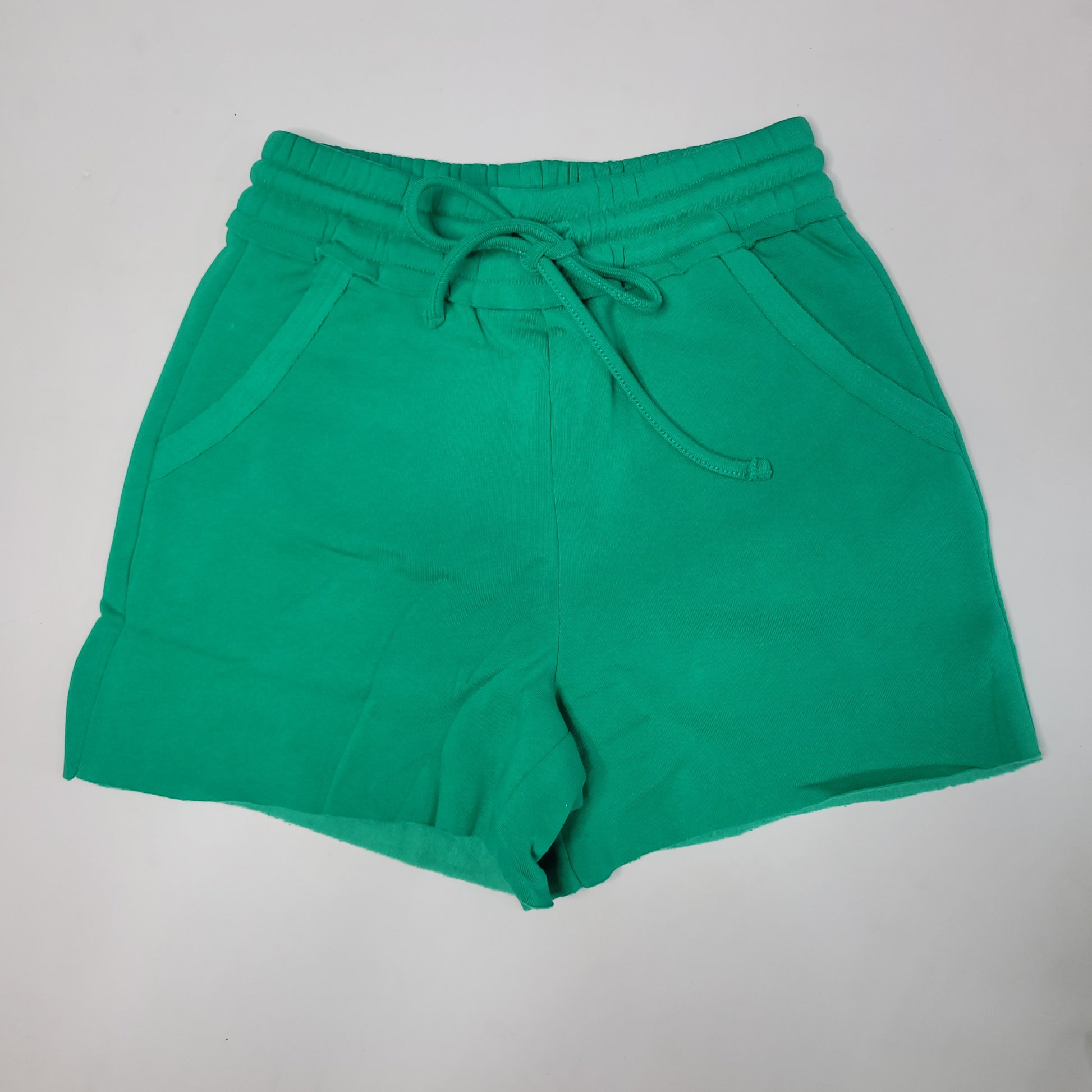FLEECE RAW HEM SHORTS WITH DRAW STRING